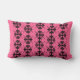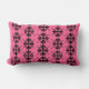 Belo travesseiro rosa e cor damasco preta. Escolha entre a almofada retangular no estilo de reforço (13" x 21") ou o travesseiro quadrado (20" x 20"). O fundo cor-de-rosa profundo com uma pulga de lis inspirou design a preto. Design de Scarebaby Design, apoiado pela garantia Zazzle.