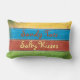 Este coxim bonito tem um olhar de madeira colorido do sinal da praia com as frondas da palma nos cantos e, de "nos beijos salgados dos dedos do pé Sandy" escritos nele em uma pia batismal brincalhão, fazendo lhe um grande acessório da casa ou da piscina de praia. Igualmente seria perfeito para a mesa do casal em uma praia, na piscina, no beira-mar ou no casamento do caribe.