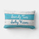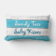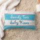 Este coxim bonito é turquesa listrada e branco e tem um olhar de madeira do sinal da praia com, de "uns beijos salgados dos dedos do pé Sandy" escritos nele em uma pia batismal brincalhão, fazendo lhe um grande acessório da casa ou da piscina de praia. Igualmente seria perfeito para a mesa do casal em um casamento da praia, do beira-mar, da piscina, o náutico ou do destino.