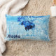 Uma imagem azul e branca de um alce de vaca em um cenário urbano durante o inverno. O texto personalizável lendo "Alaska" também é exibido. Você pode adicionar texto no verso. Moose é residente em muitas comunidades do Alasca ao longo do ano. Aqui em Anchorage há cerca de 1500 animais, juntamente com lobos, ursos pardos e outros animais selvagens. Eles são geralmente bem comportados. Muitas vezes atravessam as ruas nas passagens de pedestres, depois de esperarem por um sinal de caminhada.