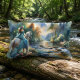 Almofada Lombar Watercolor Forest River Horsewoman Dreamscape