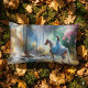 Almofada Lombar Watercolor River Horsewoman Forest Light