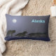 Noite Brilhante - Uma noite de inverno lua; uma mochila de lobos na prole. Também está presente a leitura de texto "Alaska" em azul e branco brilhantes.