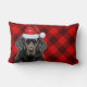 A xadrez festiva de búfalos vermelhos e negros com uma Terra Nova festiva decolada em um chapéu de Papai Noel para a temporada, é um vencedor seguro para a decoração de casa de festas do amante de animais de estimação.