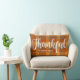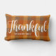 Decore sua casa ou presenteie alguém especial. Esta almofada de inspiração rústica apresenta um padrão xadrez escocês de cores de outono em laranja, amarelo e marrom com a palavra "agradecido" em branco com família em tipografia moderna.