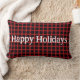 Adicione torcida de férias a qualquer quarto com este travesseiro decorativo sazonal de xadrez de búfalos vermelhos de Feliz Feriados, personalizável,