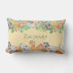 Travesseiro de sotaque de decorador de berçários de criança de animais africanos bonitos, personalizado com o nome do seu filho. Este adorável travesseiro tem girafas, elefantes, zebras, macacos e filhotes de leões. A cor de fundo é um amarelo correspondente, mas é personalizável com a ferramenta design do Zazzle.