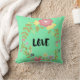 Spread the love with a touch of springtime charm! This cheerful throw pillow features the bold word "LOVE" centered within a beautiful watercolor floral wreath. The design is set against a fresh, mint green background and uses a soft palette of pink, yellow, and olive green flowers, giving it a romantic, bohemian, and cozy feel. Perfect for adding a sweet, welcoming touch to your couch, armchair, or bedroom.