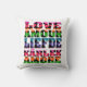 Do you like home decor with a positive message? This throw pillow features the word love in English, French, Dutch, Swedish and Italian with a neon heart pattern.