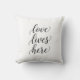 Almofada Love Lives Here Script Throw Pillow