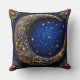 Design, trabalhada com beleza, centrada em uma lua crescente contra um fundo azul profundo. A lua é intricadamente decorada com padrões giratórios de ouro, motivos florais e pequenos embelezamentos que lhe dão uma aparência rica e opulenta. Ao redor da lua estão estrelas minúsculas, também em ouro, espalhadas ao fundo, aprimorando o tema celeste. O fundo azul profundo contrasta lindamente com os detalhes dourados, criando um efeito visual impressionante. A composição completa exude um senso de magia e capricho, evocando um céu noturno sonhador cheio de maravilha.