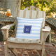 As listras azuis e brancas da luz moderna - modelam o travesseiro exterior. Estilo escandinavo.