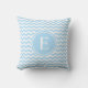 Uma luz bonito - azul e travesseiro decorativo branco do monograma de Chevron a ser personalizado e personalizado com suas iniciais.