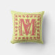 Fonte do rico em cor-de-rosa empoeirado sobre fundo amarelo-manteiga. Todas as cartas disponíveis no nosso compro. Escolha entre um travesseiro quadrado no estilo bolster de 20" x 20" ou retângulo de 13" x 21". Feitos de algodão tecido do grau A a 100%, nossos travesseiros parecem excelentes em qualquer quarto, do quarto à sala de estar, sala de família ou balanço da varanda da frente! Produzido por mães de solteiro que trabalham de forma sustentável nos EUA, sua compra personalizada de travesseiros contribui para quebrar o ciclo de pobreza para mães solteiros e seus filhos enquanto parece excelente em sua casa!