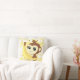 Um macaco do muito bonito e kawaii que guardara uma banana, o fundo em tons amarelos e o teste padrão da banana. visto aqui em um travesseiro decorativo com a opção de adicionar seu nome