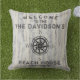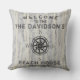 Cinzas De Madeira Atingida No Travesseiro decorativo Exterior. Um rosa de bússola para manter seus mancais oceânicos. Desfrute do efeito de ilusão óptica na moda com os tons de cinza aquecidos do plano de fundo. Náutico, costeiro, praia ou estilo de navegação. Altere o nome, o sentimento ou o monograma para personalizar.