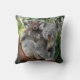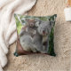 Traga o charme da natureza selvagem australiana para sua casa com nosso belo travesseiro decorativo com uma mãe e um bebê coala sentados em um galho de árvore. Este travesseiro encantador captura a ligação tenra entre os coalas, mostrando o bebê se abraçando de perto em sua mãe no meio das folhas.