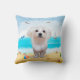 Um cão maltês sentado na praia é uma ideia perfeita de presente para alguém que ama essa raça de cachorro.