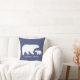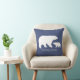 Mamãe e bebê urso almofada para decoração de berçário. No verso da almofada tem um padrão de bolinhas brancas em uma almofada azul.