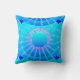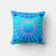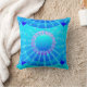 Abstrato mandala travesseiro decorativo em gradiente de cetim de discos sobrepostos centrados em torno de uma roda mimada de estrelas - tons de turquesa/pavão e aqua, acentuados com violeta mole