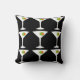 Isto mantem-nos características de vinda do travesseiro decorativo de Martini um fundo preto e a imagem telhada de uma silhueta branca de um vidro de martini. Dentro de cada vidro é uma azeitona verde gloriosa com um pimento alaranjado. Este é um travesseiro decorativo do divertimento para todos que deseja que eram um caráter em um filme clássico. Agitado não agitado, por favor!