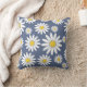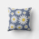 Daisy de primavera sobre fundo azul tachado. As margaridas são flores felizes e este travesseiro certamente trará um pouco ou luz do sol para uma sala adicionando esse pop extra. Esta design bombeará a vibração moderna do século médio no seu espaço. É groovy.