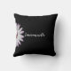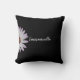 Este travesseiro decorativo elegante tem uma margarida branca e o seu nome numa letra de script num fundo preto. Impresso em ambos os lados!