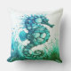 Um elegante cavalo de mar em azul e aqua é a base deste barco ou travesseiro decorativo de praia. Perfeito para adicionar um sotaque personalizado chic ao seu barco de luxo.
