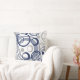 Vários círculos azuis e cinzas se combinam para fazer um design interessante e atraente nesse travesseiro. As imagens circulares são colocadas sobre um fundo branco. O padrão é repetido na parte de trás do travesseiro. *Obrigado para Milachi Design em Etsy.com para o padrão de círculo usado neste design.