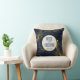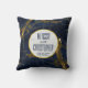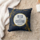 Travesseiro de casamento personalizado com um na moda e um fundo elegante de marinho azul e mármore dourado. Camadas sobre o topo é um círculo com uma borda falsa de folha de papel dourada com o seu dentro de texto personalizado.