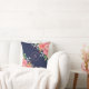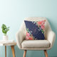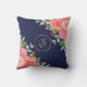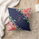 Este travesseiro apresenta um design de aquarela moderno com flores rosa e corais com folhagem e folhas sobre fundo azul marinho. Personalize o monograma com uma inicial.