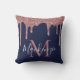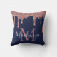 Marinho chic Blue e Rosa Dourado Glitter Drips O Travesseiro decorativo monograma com um falso brilho cor-de-rosa/ouro rosa em um fundo azul marinho chic com seu monograma e nome personalizados. Você está pingando no luxo, então mostre! Entre em contato conosco em cedarandstring@gmail.com se precisar de assistência com o design ou produtos correspondentes.