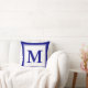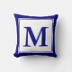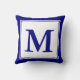 Um grande monograma azul marinho aparece sobre um fundo branco. O monograma tem uma borda marinho azul e branca. Personalize o travesseiro decorativo branco e azul com o seu monograma/inicial.