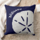 Este travesseiro costeiro moderno apresenta um dólar de areia branca tropical em um fundo azul marinho com seu próprio nome, e é perfeito para a casa de praia, a casa de praia, ou para o decoro residencial náutico, costeiro ou litoral, ou se você vive perto do oceano. Fotografia do coral e design © por TK Goforward, todos os direitos reservados.
