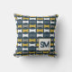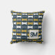 Almofada Marinho Geométrico Monograma do Meio século Retroa