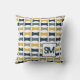 Almofada Marinho Geométrico Monograma do Meio século Retroa
