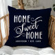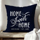 Traga calor e charme para sua casa com este travesseiro decorativo azul de marinho "Home Sweet Home" personalizado. A escrita elegante e o nome familiar personalizável criam um toque de boas-vindas para a sua sala de estar ou quarto. A cor do marinho profundo adiciona um toque de sofisticação a qualquer estilo de decoração residencial.