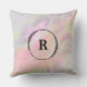 Adicione alguma beleza elegante do abstrato do chique a sua casa com estes lavanda azul iridescente customizável e travesseiro decorativo de mármore cor-de-rosa. O fundo moderno chique elegante abstrato é feito de azuis dos roxos e os rosa com algum espirram do branco e do amarelo.