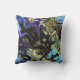 Travesseiro decorativo de mármore preto, azul e abstrato verde-oliva. Ele apresenta um padrão de abstrato no estilo de mármore de corante de gravata.
