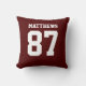 Add a name and number(s) to personalize this custom double-sided maroon and white sports jersey inspired accent pillow. It is an excellent gift for a sports fan or athlete. The options to change the color and font sizes are available.