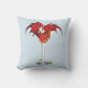 Um pequeno dragão vermelho giro se aproxima de uma azeitona verde em um vidro martini em um pano de fundo azul