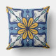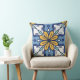 Bring the vibrant spirit of a Spanish courtyard into your living space with this exquisite decorative pillow. Featuring a classic Talavera-inspired mandala, the design showcases a harmonious blend of dusty azure, radiant ochre, and deep cobalt. The symmetrical floral motif is accented by fresh mint-green highlights, creating a timeless geometric pattern that adds a sophisticated pop of color and artisanal charm to any sofa, armchair, or bedding set.