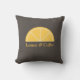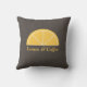Um travesseiro marrom com meia fatia de limão amarelo e texto personalizável. Pode ser usado para decoração de casa ou como presente para um amante de citros!