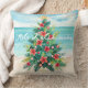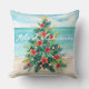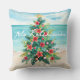 Bring tropical cheer to your home this holiday season with this festive "Mele Kalikimaka" pillow. Featuring a Christmas tree made of palm leaves, decorated with red and pink hibiscus flowers, colorful ornaments, and topped with a starfish, this design captures the spirit of a beachside celebration. Perfect for coastal homes, island getaways, or anyone dreaming of a warm, sunny Christmas.