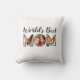Este travesseiro decorativo personalizado fofo para mães apresenta um design de três fotos de colagem de arte em texto lendo "A Melhor Mãe do Mundo". Preencha o cartaz com suas fotos da família favoritas para um presente exclusivo para o Dia de as mães. Elaborado por ©Susan Coffey.