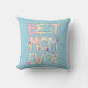 Celebre o Dia de as mães com este travesseiro decorativo azul giro que apresenta um texto caprichoso que diz 'Melhor Mãe Nunca'.