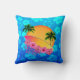Menina do surfista com o conselho de surf, as palmeiras, o por do sol, e as flores do hibiscus. Com o azul de oceano um fundo com as tartarugas e o hibiscus havaianos de mar de Honu floresce.
