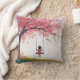 Uma garotinha de vestido cor-de-rosa senta-se num balanço pendurado numa árvore de flores de cereja.