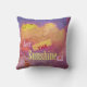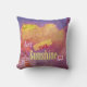 A parede, no trabalho de arte original de ZoeSPEAK neste Travesseiro decorativo inspiracional, é uma velha parede vermelha de tijolos com um mural no stucco que está se desfazendo. O mural é uma fotografia de nuvens inchadas no pôr do sol, todas rosa e amarelo claro no topo contra um céu azul profundo. A mensagem é deixar o sol entrar.