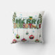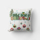 This Merry Christmas Throw Pillow brings festive cheer to any room with its fun holiday lettering, candy cane accents, and Christmas ornaments.